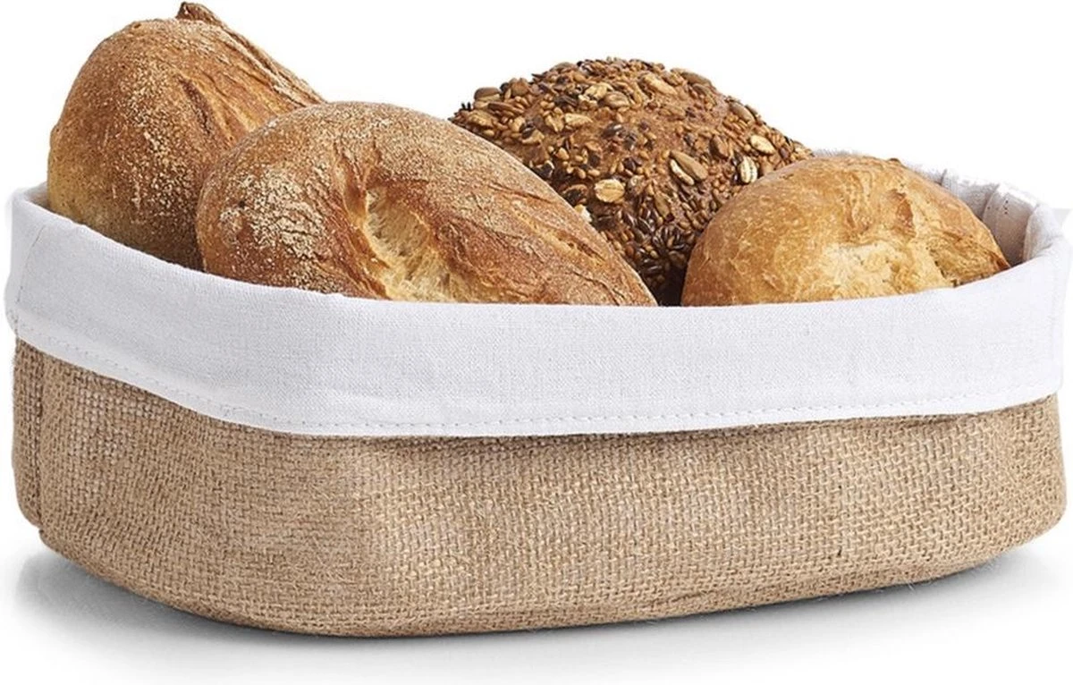 1x Jute brood serveer mandjes 26 x 18 cm met witte katoenen binnenkant. Een ovaal mandje om bijvoorbeeld broodjes en croissantjes in te presenteren/serveren. Ideaal om te gebruiken tijdens een heerlijke brunch met o.a. Kerst en Pasen. Afmeting: ca. 26 x 18 x 11 cm. Materiaal: jute met katoenen binnenkant. Reinigen: afnemen met een vochtige doek. U ontvangt 1x stuks. Zeller – Keukenbenodigdheden – Tafel dekken – Ontbijten/Brunchen/Lunchen – Broodjes/bolletjes serveren – Broodmanden.