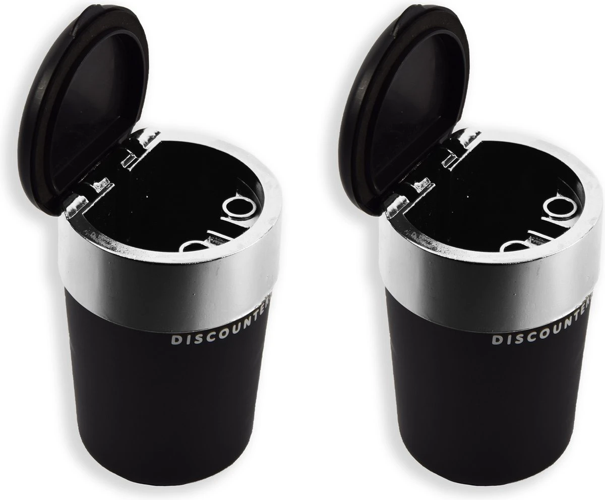 2 Stuks Auto asbak zwart met Led verlichting en klepje 12 x 8 cm. Ideale asbak voor in de auto met Led verlichting.