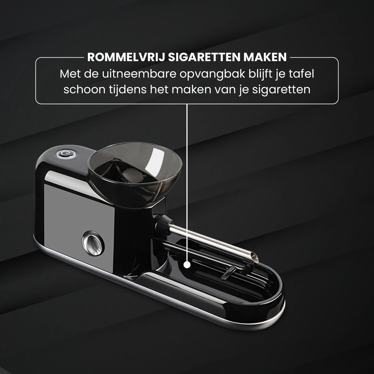 Door deze machine heeft u geen last meer van het gepiel en rotzooi van het handmatig draaien. Tevens zit er een opvangbakje bij waardoor verspilde tabak weer makkelijk gebruikt kan worden en het apparaat niet knoeit.
