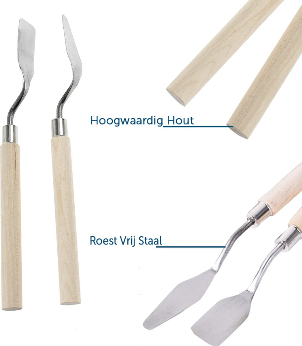 Deze paletmessen zijn perfect voor schilders, kunstenaars en iedereen die verf- of schilderwerkzaamheden uitvoert. Of je nu op doek of op muur schildert, met deze messen heb je altijd het juiste gereedschap bij de hand.