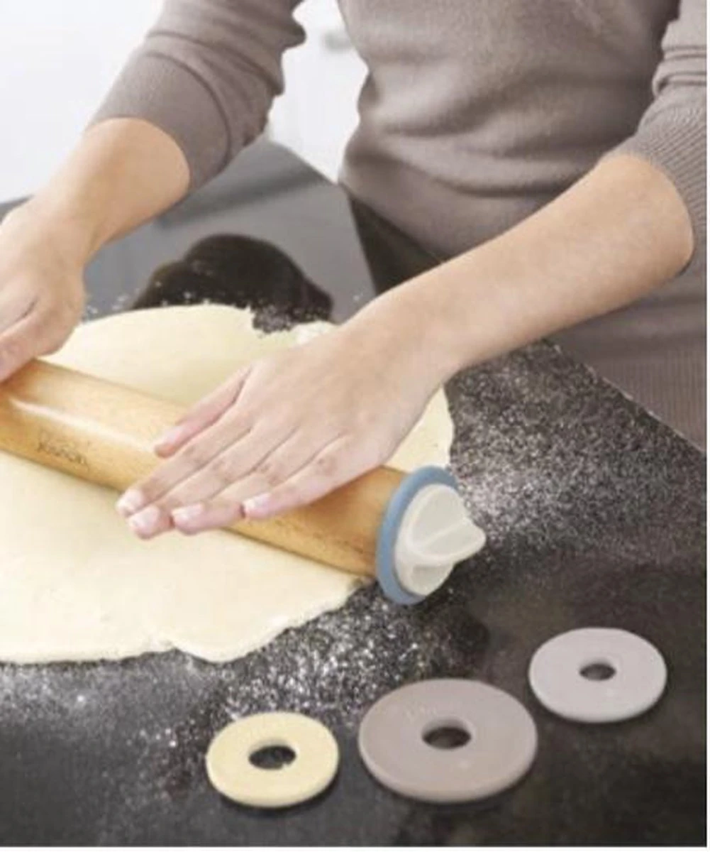 Deze deegroller van Joseph Joseph is verstelbaar waardoor de maat en dikte aangeduid kan worden. Door de verschillende maten ringen kan er precies naar een dikte worden gerold.