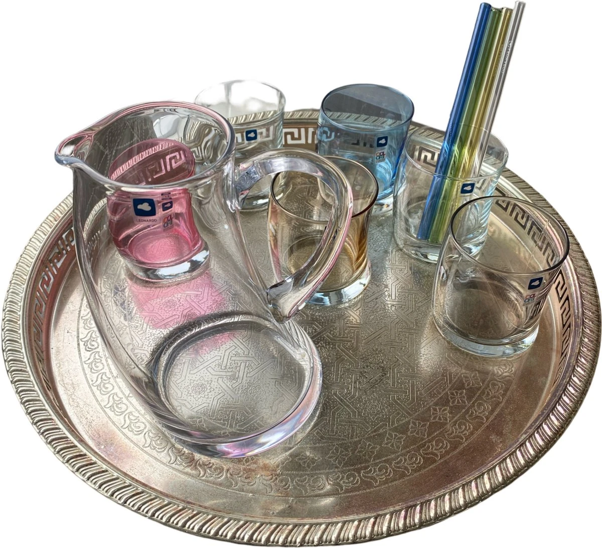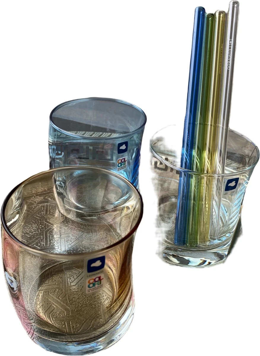 | Verpakkingsinhoud | 1 Glazen karaf 6 Glazen Set van 4 glazen rietjes met schoonmaak rager |