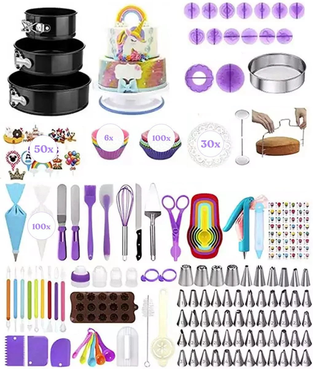 Dol op taarten bakken en decoreren? Dan heb je hier alle accessoires die je maar nodig hebt. In deze 407-delige, luxe set vind je werkelijk alles wat u nodig heeft en kun je direct aan de slag.