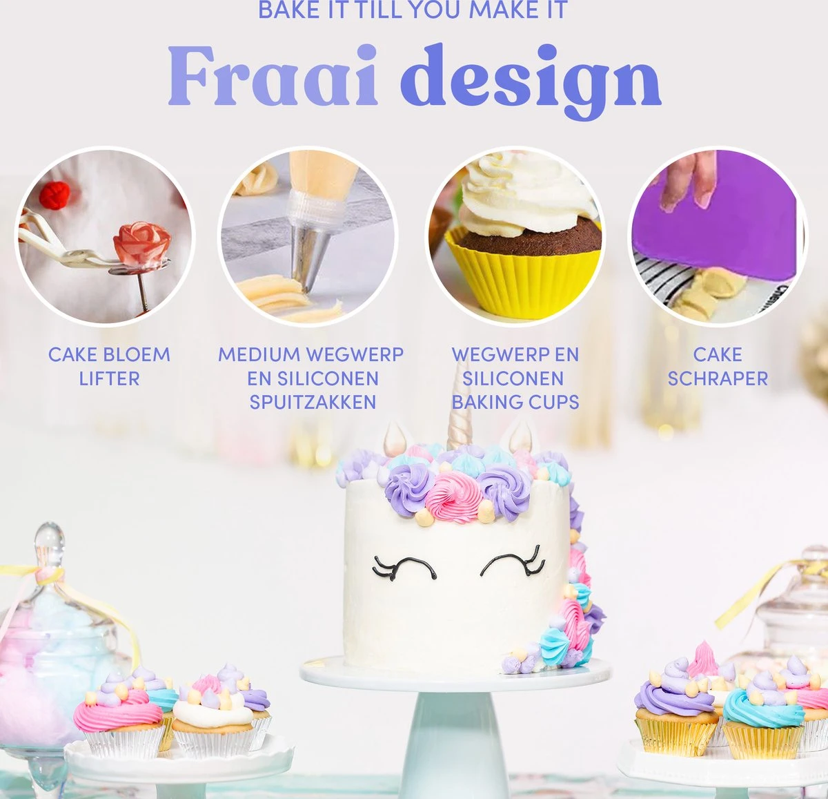 Hoe leuk is het om zelf, of samen, iets te bakken met deze uitgebreide set. Van jong tot oud, beginner tot pro… iedereen kan overweg met deze set! Deze bakset bevat alle basis artikelen die je nodig hebt om de mooiste creaties te maken!