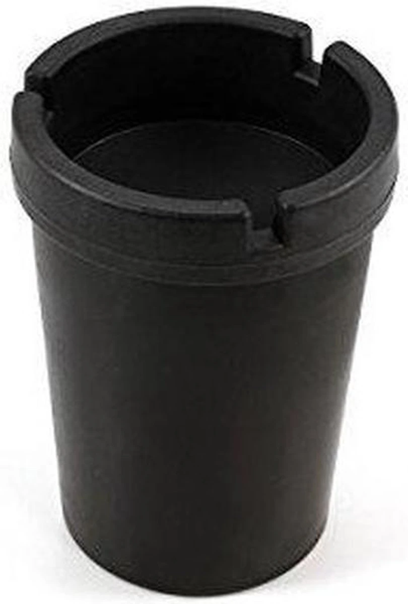Zwarte auto asbak. Ideale asbak voor in de auto. Zorgt ervoor dat een brandende sigaret direct dooft als je deze erin stopt, vanwege de kleine opening. Bekerhouder formaat, ongeveer 11 x 8 cm. Materiaal: kunststof. Sigaret dovende auto asbakken auto accessoires.