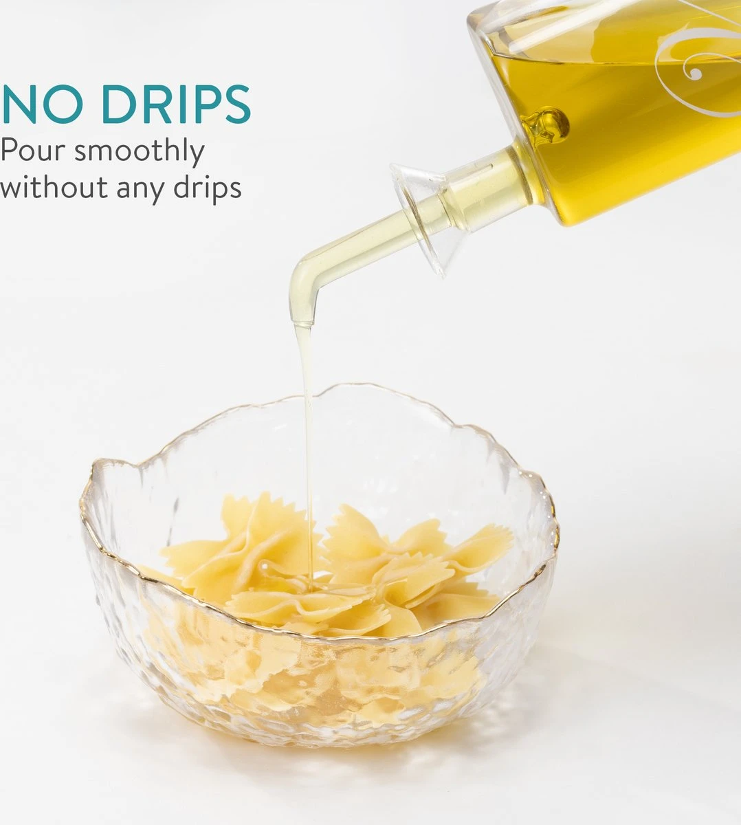 - MET SCHENKTUIT: Dankzij de handige schenktuit hoef je je geen zorgen te maken over gemors tijdens een lekker diner. Je kan de azijn of olie elegant en in een handige dosis uitschenken.