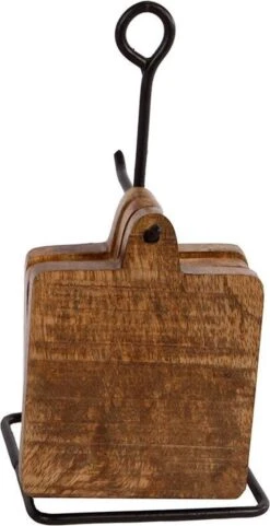 Zes rechthoekige houten onderzetters met een standaard. Praktisch en decoratief!