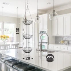Chefarone Hangende Fruitmand – Fruitschaal 130 CM – Keukenhanger 3 Manden – Fruithangmand – Zwart