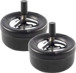 Excellent Houseware Ronde Draai/druk Terras Asbak Zwart RVS 12 X 7 Cm – Buiten Asbakken