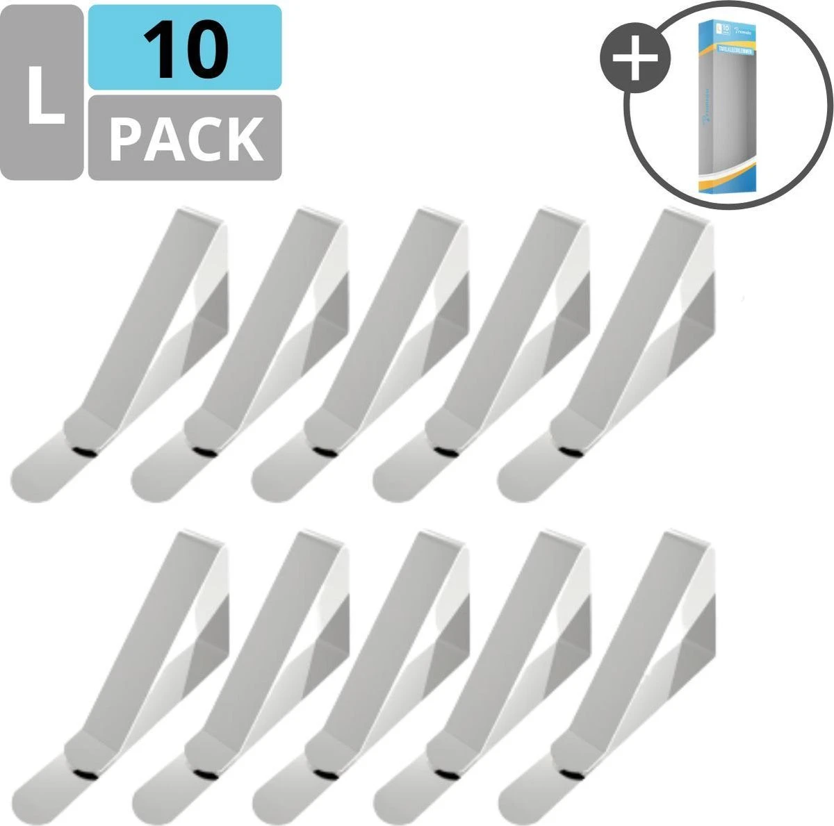 Heb jij vaker last van een tafellaken dat wegwaait of niet goed vlak blijft? Deze tafelkleedklemmen maken het voor jou heel gemakkelijk om het tafellaken op zijn plek te houden. De tafelklemmen zijn gemaakt van roest vrij staal en gaan dus niet snel kapot. Met de 10 pack kunt u eenvoudig meerdere kanten van het tafellaken op zijn plek houden.