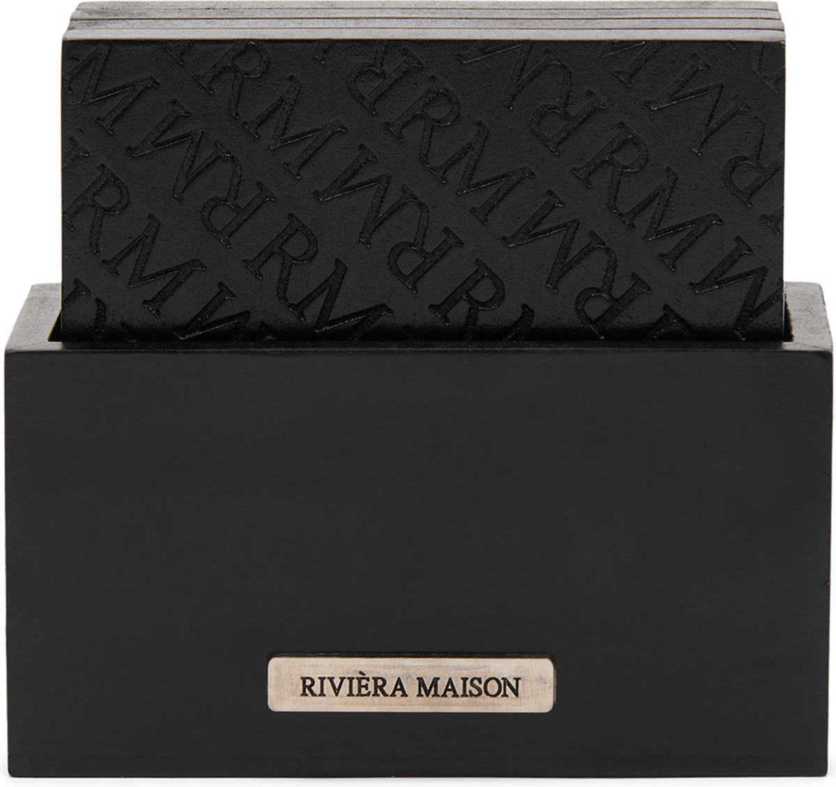 Een set onderzetters is handig om in huis te hebben, zeker als ze zo mooi zijn uitgevoerd als de RM Identity-set. De set bestaat uit vier vierkanten houten onderzetters met een bijpassende houder. In de zwarte onderzetters is heel kunstig het RM-monogram aangebracht.