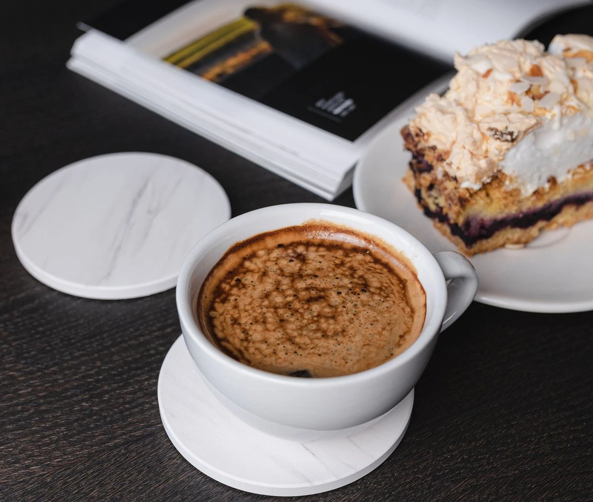 Keramische onderzetters absorberen binnen no-time vocht, als de onderkant van bijvoorbeeld je beker koffie of glas thee vochtig is geworden tijdens het inschenken. Geen last meer van waterkringen op je tafel. Erg praktisch!
