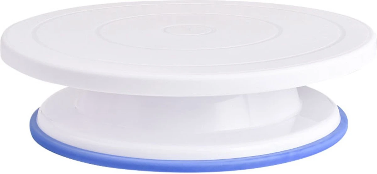 Het taartplateau draait soepel, zodat je beide handen vrij hebt voor de decoratie van je taart. Door de anti-slip laag aan de onderkant zal het plateau niet verschuiven. Tevens staan er lijnen op het plateau waarmee je de juiste taartomvang kunt bepalen. Door deze functies wordt het decoreren van je taart “a piece of cake”. Het taartplateau is ook heel geschikt om het eindresultaat op te presenteren.