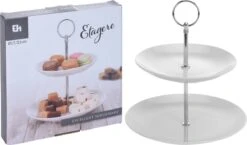 OMID HOME Bamboe Etagere 2-laags / High Tea Serveerplateau / Tapas Kaasplankje/ Borrelplank /