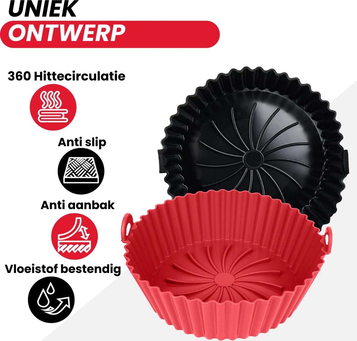 We weten allemaal dat schoonmaken na het bakken het laatste is wat je wilt doen. Gelukkig zijn er siliconen bakvormen om je leven gemakkelijker te maken. De flexibele heteluchtfriteuse accessoires zijn zeer zacht, flexibel en anti-aanbak, je kunt de bakken binnenstebuiten keren om etensresten en vuil eenvoudig uit te gieten. Na het koken wast u de siliconen bakken gewoon in de vaatwasser of met de hand. De siliconen bakjes laten geen resten achter in het mandje en dat maakt het schoonmaken van uw friteuse nog gemakkelijker.