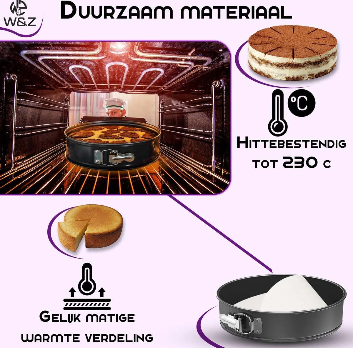 De taartvormen zijn gemaakt van dun veredeld plaatstaal. Dit zorgt ervoor dat de bakvormen niet snel beschadigen en dus erg lang meegaan. Ook zijn alle bakvormen voorzien van een antiaanbaklaag en een anti-lek rand. De lekvrije onderkant zorgt ervoor dat elke taart er prachtig uit ziet. Dankzij de teflon coating is het mogelijk om de plaat gemakkelijk te reinigen. Zo is de springvorm binnen mum van tijd weer schoon!
